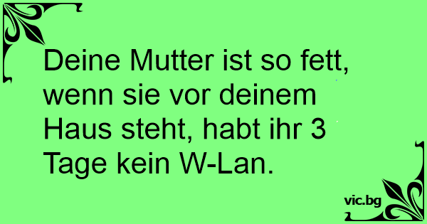 Deine Mutter ist so fett, wenn sie vor deinem Haus steht, habt ihr 3 Tage kein W-Lan.