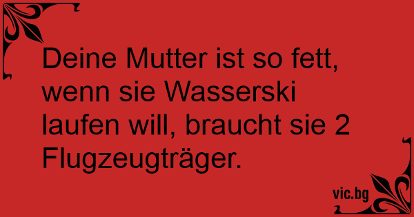 Deine Mutter ist so fett, wenn sie Wasserski laufen will, braucht sie 2 Flugzeugträger.
