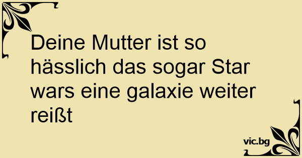 Deine Mutter ist so hässlich das sogar Star wars eine galaxie weiter reißt