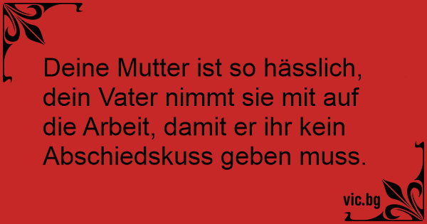 Deine Mutter ist so hässlich, dein Vater nimmt sie mit auf die Arbeit, damit er ihr kein Abschiedskuss geben muss.