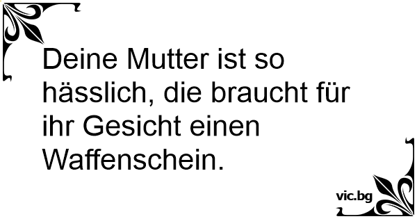 Deine Mutter ist so hässlich, die braucht für ihr Gesicht einen Waffenschein.