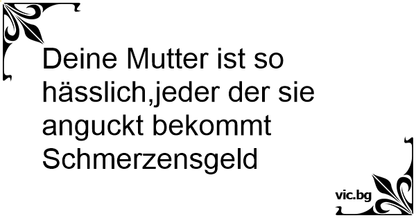 Deine Mutter ist so hässlich,jeder der sie anguckt bekommt Schmerzensgeld