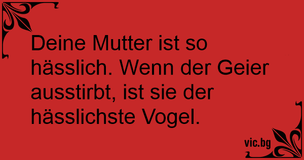 Deine Mutter ist so hässlich. Wenn der Geier ausstirbt, ist sie der hässlichste Vogel.
