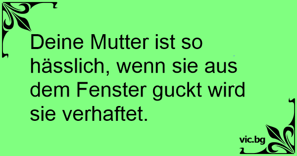 Deine Mutter ist so hässlich, wenn sie aus dem Fenster guckt wird sie verhaftet.