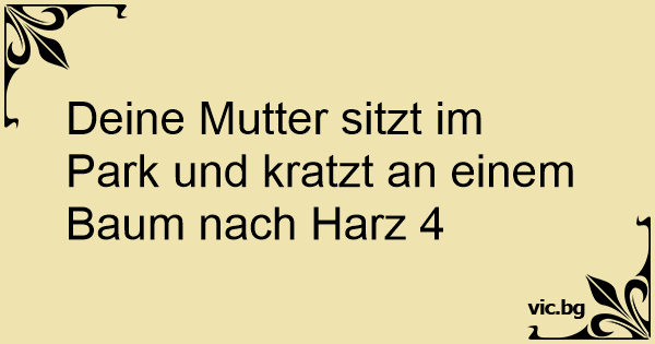Deine Mutter sitzt im Park und kratzt an einem Baum nach Harz 4