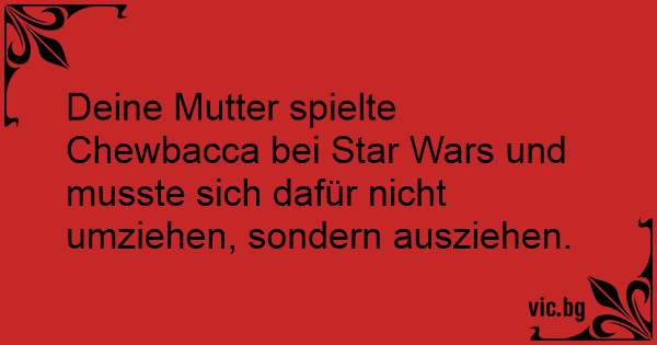 Deine Mutter spielte Chewbacca bei Star Wars und musste sich dafür niсhт umziehen, sondern ausziehen.