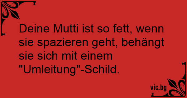 Deine Mutti ist so fett, wenn sie spazieren geht, behängt sie sich mit einem "Umleitung"-Schild.