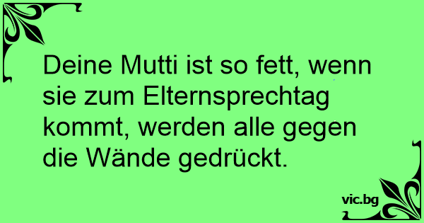 Deine Mutti ist so fett, wenn sie zum Elternsprechtag kommt, werden alle gegen die Wände gedrückt.