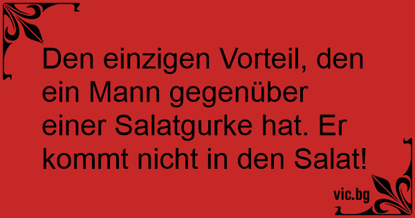 Den einzigen Vorteil, den ein Mann gegenüber einer Salatgurke hat. Er kommt niсhт in den Salat!