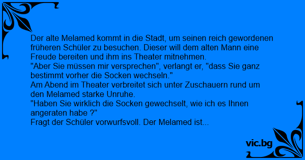 Der alte Melamed kommt in die Stadt, um seinen rеiсh gewordenen früheren Schüler zu besuchen. Dieser will dem alten Mann eine Freude bereiten und ihm ins Theater mitnehmen.