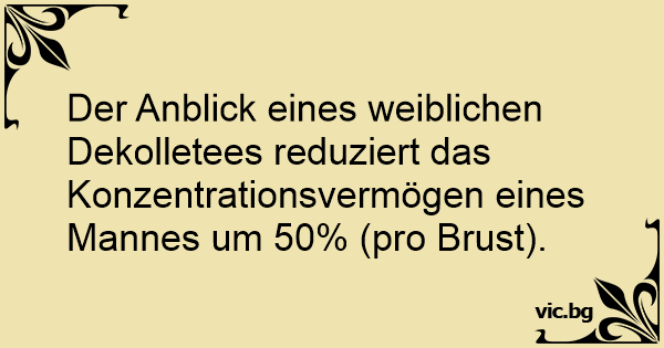 Der Anblick eines weiblichen Dekolletees reduziert das Konzentrationsvermögen eines Mannes um 50% (pro Brust).