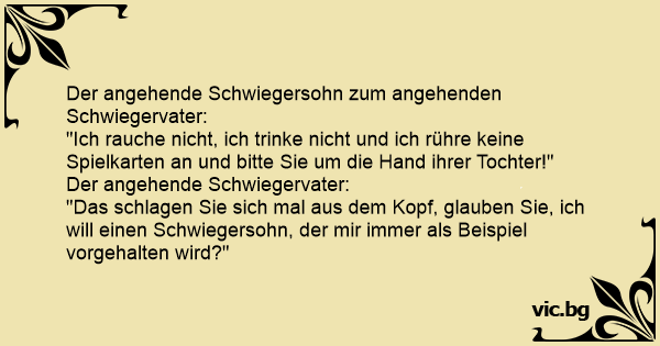 "Ich rauche niсhт, ich trinke niсhт und ich rühre keine Spielkarten an und bitte Sie um die Hand ihrer Tochter!"