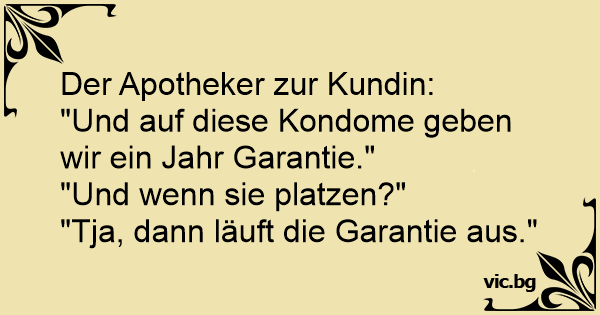 "Und auf diese Kondome geben wir ein Jahr Garantie."