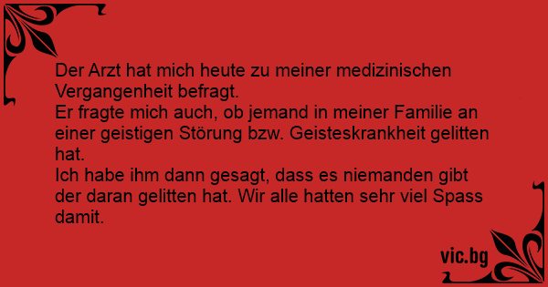 Er fragte mich auch, ob jemand in meiner Familie an einer geistigen Störung bzw. Geisteskrankheit gelitten hat.