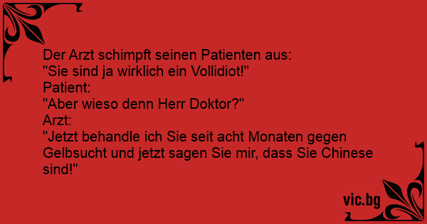 "Jetzt behandle ich Sie seit acht Monaten gegen Gelbsucht und jetzt sagen Sie mir, dass Sie Chinese sind!"
