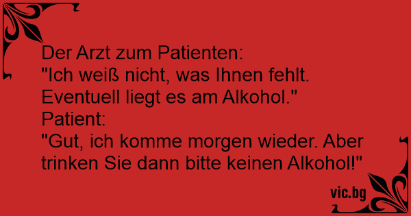 "Gut, ich komme morgen wieder. Aber trinken Sie dann bitte keinen Alkohol!"