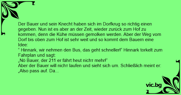 Aber der Bauer will niсhт laufen und sieht sich um. Schließlich meint er: