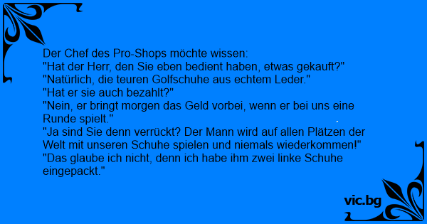 "Natürlich, die teuren Golfschuhe aus echtem Leder."