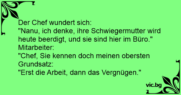 "Nanu, ich denke, ihre Schwiegermutter wird heute beerdigt, und sie sind hier im Büro."