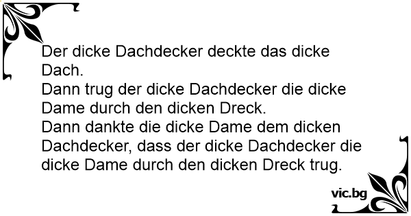 Dann dankte die dicke Dame dem dicken Dachdecker, dass der dicke Dachdecker die dicke Dame durch den dicken Dreck trug.