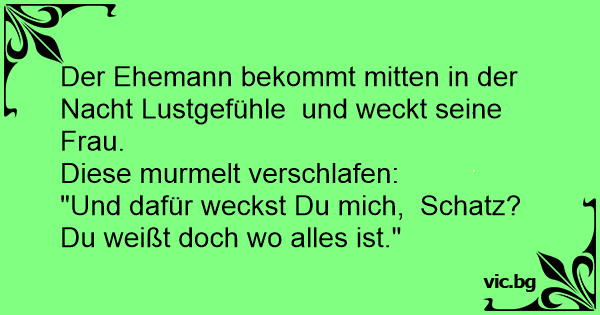 Der Ehemann bekommt mitten in der Nacht Lustgefühle und weckt seine Frau.