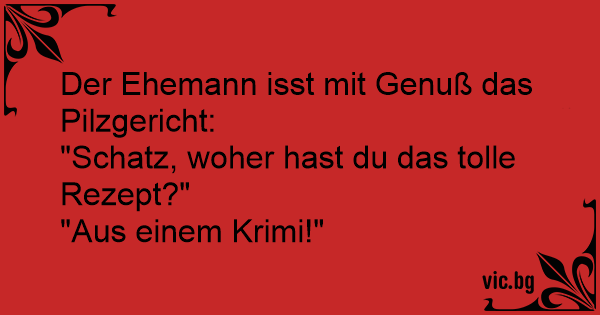 Er: "Mmmh, das Pilzgericht war lecker! Wo hast du nur das Rezept her?"