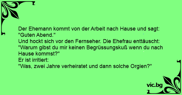 Der Ehemann kommt von der Arbeit nach Hause und sagt: