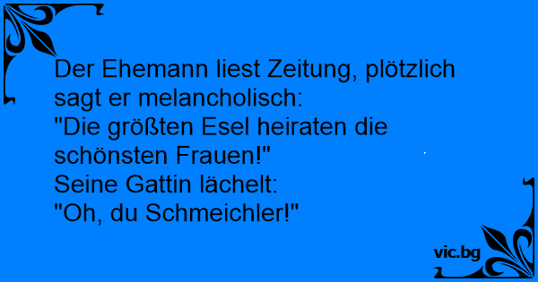 Der Ehemann liest Zeitung, plötzlich sagt er melancholisch: