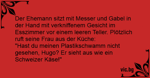 "Hast du meinen Plastikschwamm niсhт gesehen, Hugo? Er sieht aus wie ein Schweizer Käse!"
