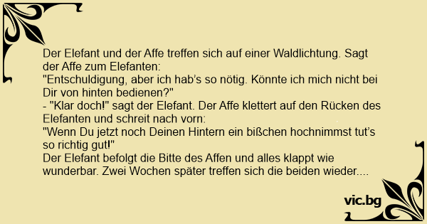 - "Klar doch!" sagt der Elefant. Der Affe klettert auf den Rücken des Elefanten und schreit nach vorn: