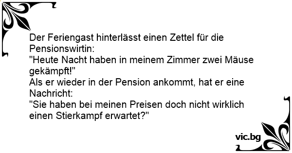Der Feriengast hinterlässt einen Zettel für die Pensionswirtin: