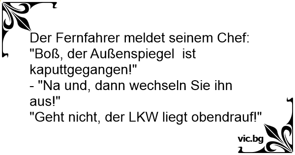 "Boß, der Außenspiegel ist kaputtgegangen!"