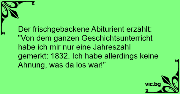 "Von dem ganzen Geschichtsunterricht habe ich mir nur eine Jahreszahl gemerkt: 1832. Ich habe allerdings keine Ahnung, was da los war!"