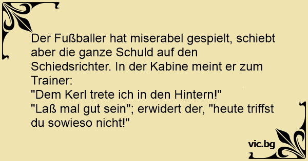 Der Fußballer hat miserabel gespielt, schiebt aber die ganze Schuld auf den Schiedsrichter. In der Kabine meint er zum Trainer: