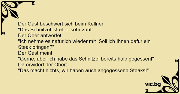 "Gerne, aber ich habe das Schnitzel bereits halb gegessen!"