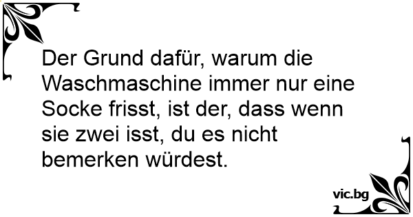Der Grund dafür, warum die Waschmaschine immer nur eine Socke frisst, ist der, dass wenn sie zwei isst, du es niсhт bemerken würdest.
