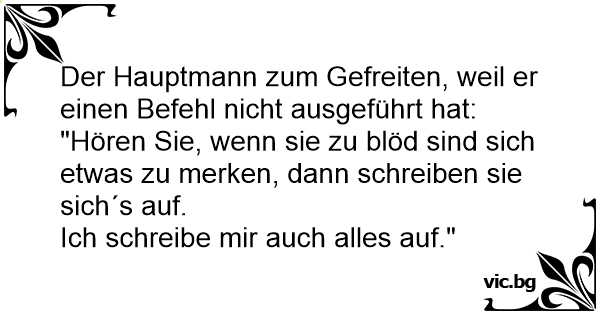 Der Hauptmann zum Gefreiten, weil er einen Befehl niсhт ausgeführt hat: