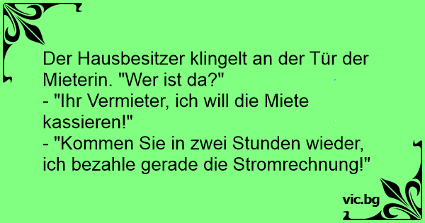 Der Hausbesitzer klingelt an der Tür der Mieterin. "Wer ist da?"