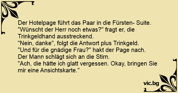"Ach, die hätte ich glatt vergessen. Okay, bringen Sie mir eine Ansichtskarte."