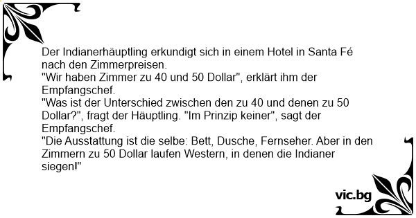 "Was ist der Unterschied zwischen den zu 40 und denen zu 50 Dollar?", fragt der Häuptling. "Im Prinzip keiner", sagt der Empfangschef.