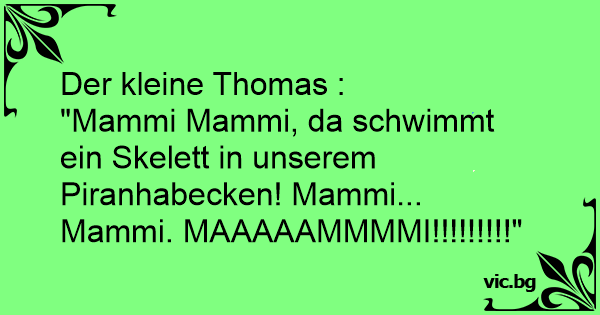 "Mammi Mammi, da schwimmt ein Skelett in unserem Piranhabecken! Mammi... Mammi. MAAAAAMMMMI!!!!!!!!!"