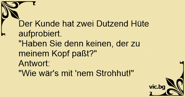 "Haben Sie denn keinen, der zu meinem Kopf paßt?"