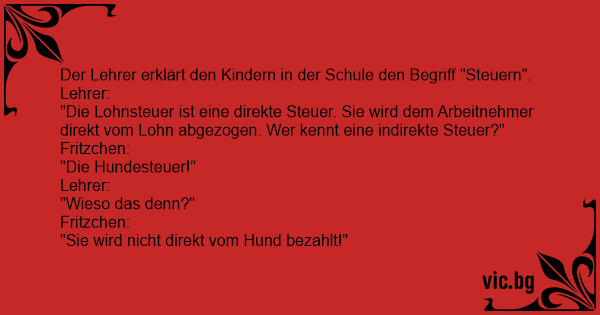 "Die Lohnsteuer ist eine direkte Steuer. Sie wird dem Arbeitnehmer direkt vom Lohn abgezogen. Wer kennt eine indirekte Steuer?"