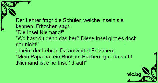 Der Lehrer fragt die Schüler, welche Inseln sie kennen. Fritzchen sagt: