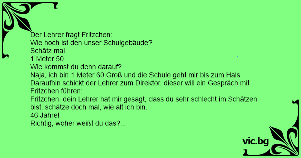 Fritzchen, dein Lehrer hat mir gesagt, dass du sehr schlecht im Schätzen bist, schätze doch mal, wie alt ich bin.