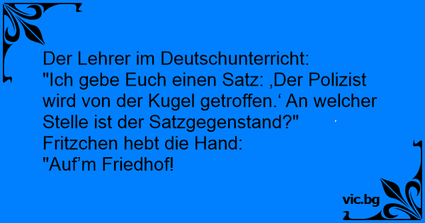 "Ich gebe Euch einen Satz: ‚Der Polizist wird von der Kugel getroffen.‘ An welcher Stelle ist der Satzgegenstand?"