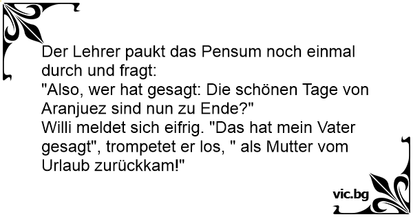 Willi meldet sich eifrig. "Das hat mein Vater gesagt", trompetet er los, " als Mutter vom Urlaub zurückkam!"