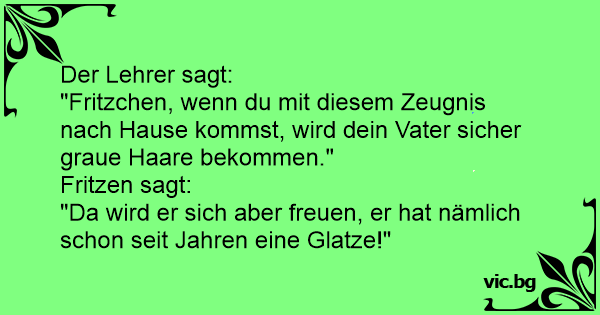 "Fritzchen, wenn du mit diesem Zeugnis nach Hause kommst, wird dein Vater sicher graue Haare bekommen."