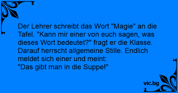 Der Lehrer schreibt das Wort "Magie" an die Tafel. "Kann mir einer von euch sagen, was dieses Wort bedeutet?" fragt er die Klasse.