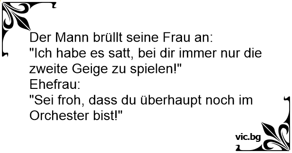 Съпругът: - Не искам да съм втора цигулка! Тя: - Ти се радвай, че изобщо си в оркестъра...